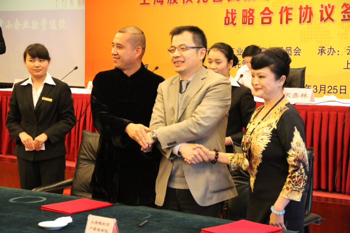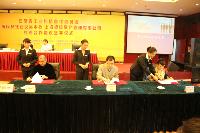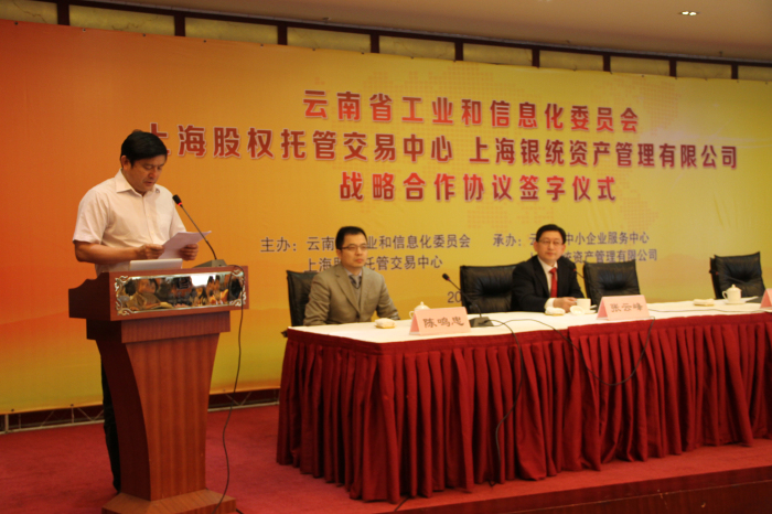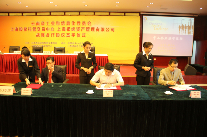 云南省工业和信息化委员会、上海股权托管交易中心、上海银统资产管理中心战略合作协议签字仪式在昆举行 来源: 发布时间:2014-03-25 15:06:12 浏览次数: 次 【字体:小 大】 智能标签: 上海 中心 云南省 工业 信息化 相关内容 【打印正文】