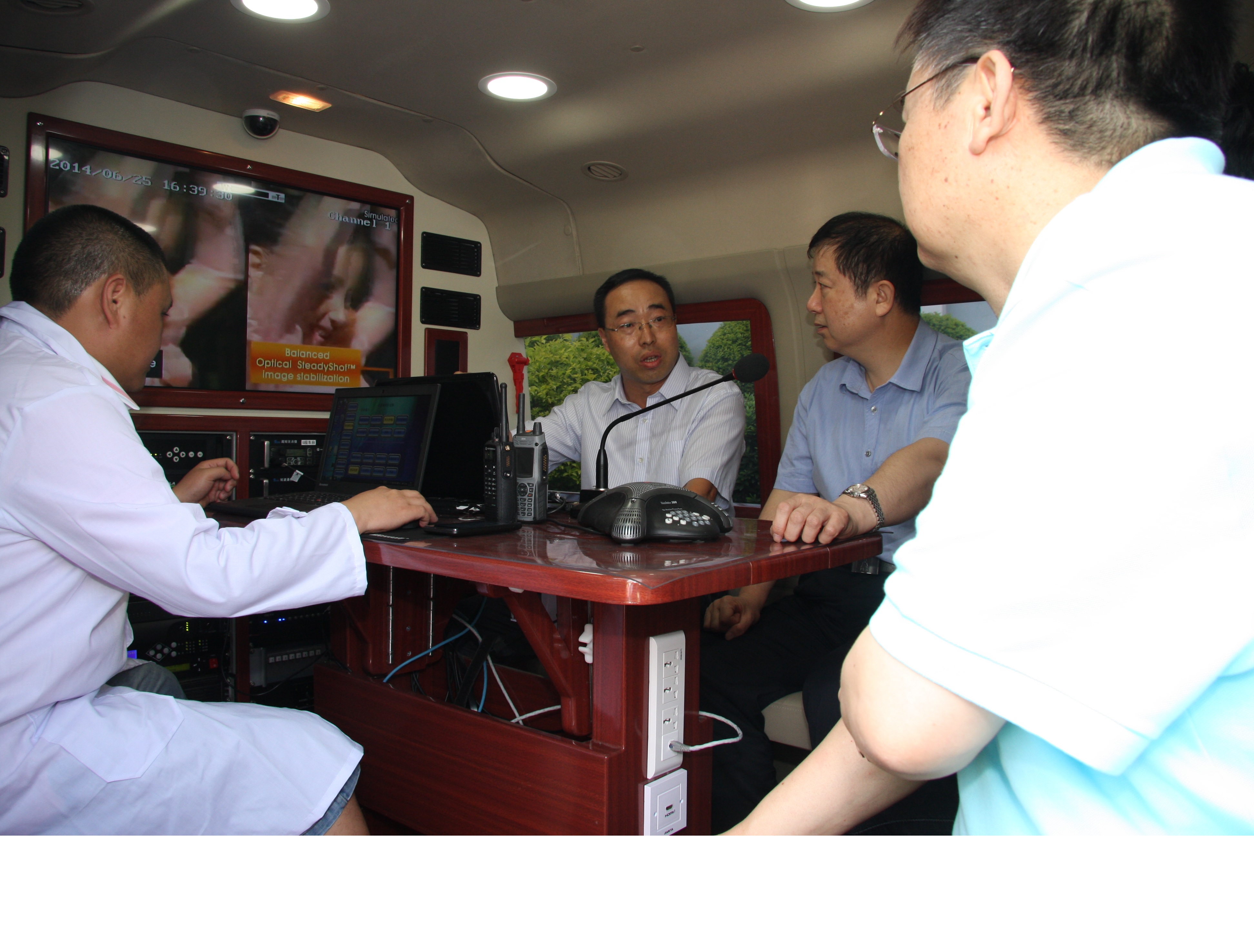 图二:刘部长参观应急通信指挥车