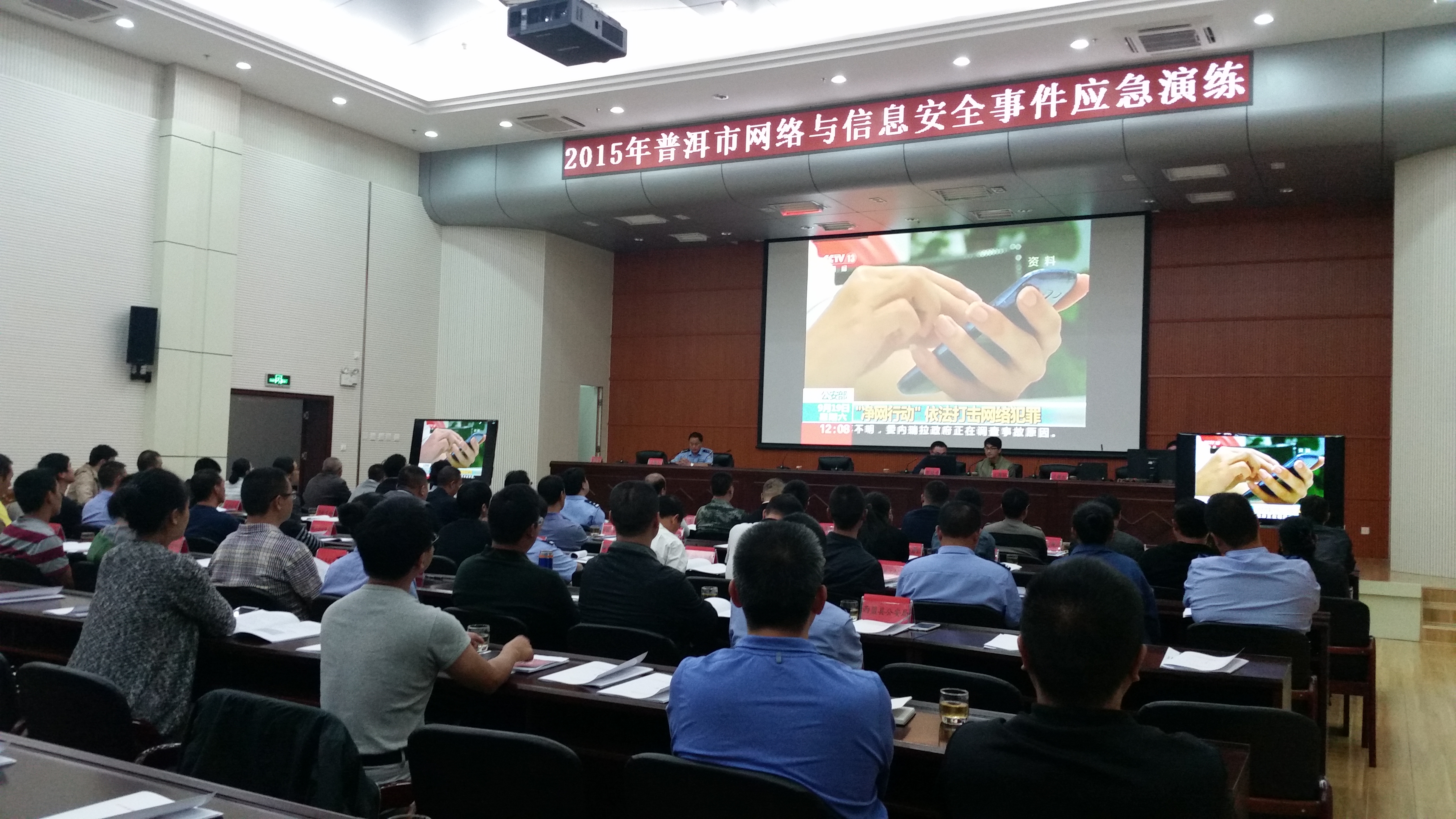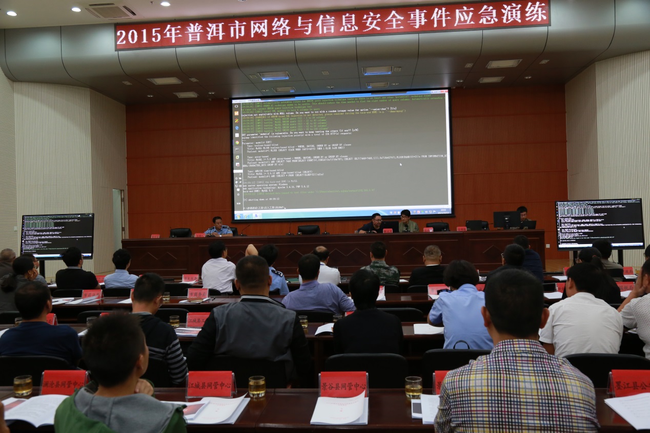 2015年10月12日上午,普洱市首次网络与信息安全事件应急演练成功举办。演练由普洱市公安局网安支队政委杨杰同志主持,普洱市工信委信息安全协调科、网络信息化科、网管中心和云南云思科技有限公司的专家共同实施了演练。
