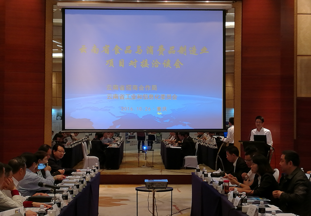 2016年10月26日,由省工业和信息化委和省招商局共同举办的云南省食品与消费品制造业项目对接洽谈会在重庆召开。会议邀请了重庆光大集团乳业股份有限公司、重庆天威实业有限公司、重庆长富实业有限公司、重庆周君记火锅食品有限公司等六十多户企业及重庆市工商联、云南省川渝商会等机构参会。