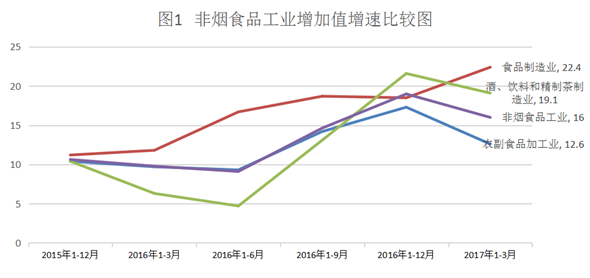 (一)工业生产保持平稳增长。一季度,全省规模以上非烟食品工业完成增加值88.27亿元,同比增长16%;其中,农副食品加工业完成增加值49.53亿元,同比增长12.6%;食品制造业完成增加值13.83亿元,同比增长22.4%;酒、饮料和精制茶制造业完成增加值24.91亿元,同比增长19.1%。