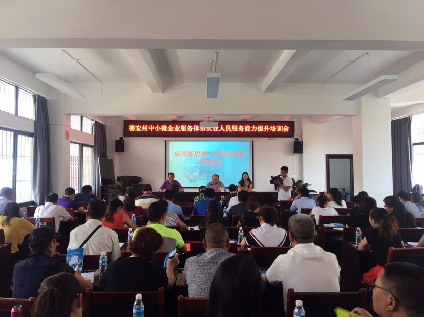 德宏州是我国西南辐射南亚东南亚、直通印度洋的前沿枢纽和最便捷安全通道。在“一带一路”、桥头堡建设和孟中印缅经济走廊建设等国家重大战略部署中,德宏从开放的“末梢”变成了开放的前沿,从交通的末端变成了交通的枢纽。针对德宏州中小企业公共服务窗口平台和瑞丽国家重点开发开放试验区公共服务窗口平台如何开展主动服务融入国家战略,2017年5月8日由省中小企业服务中心带队的专家志愿服务团队来到了德宏州中小企业公共服务窗口平台和国家重点开发开放试验区公共服务窗口平台,与州直各相关部门、州工信委、德宏州中小企业公共服务窗口平台及国家重点开发开放试验区公共服务窗口平台领导和负责人齐聚一堂,面对面交流座谈并授课培训。