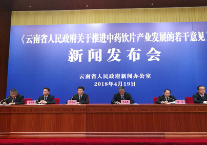 我委参加《云南省人民政府关于推进中药饮品产业发展的若干意见》新闻发布会 来源:食品药品工业处 发布时间:2018-04-24 15:13:25 浏览次数: 次 【字体:小 大】 为充分发挥云南省药物资源丰富的优势,进一步做强做大中药饮片产业,推进中药饮片产业健康快速发展,4月19日,《云南省人民政府关于推进中药饮片产业发展的若干意见》新闻发布会在昆明海埂会堂召开。会上,省食品药品监督管理局向社会各界和媒体界的朋友们通报和解读《云南省人民政府关于推进中药饮片产业发展的若干意见》的具体内容,省工信委、省财政厅、省科技厅、省卫计委就相关问题回答了记者提问。我委总经济师陈钟耕参加发布会,并就中药饮片发展专项奖补资金重点支持方向和具体奖补办法回答了记者的提问。 【打印正文】