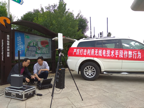 考试期间,我中心严格执行工作方案,派专人使用临近考点的固定监测站实施不间断监听,并在考点架设多套考场监测系统及管控设备。同时,还派出移动监测车相继在各主要考点间流动式监测,有力的维护了昆明考区各主要考点周边的空中电波秩序和考场秩序,为高考学子创建了一个公平公正的考试环境,圆满完成了高考无线电保障任务。