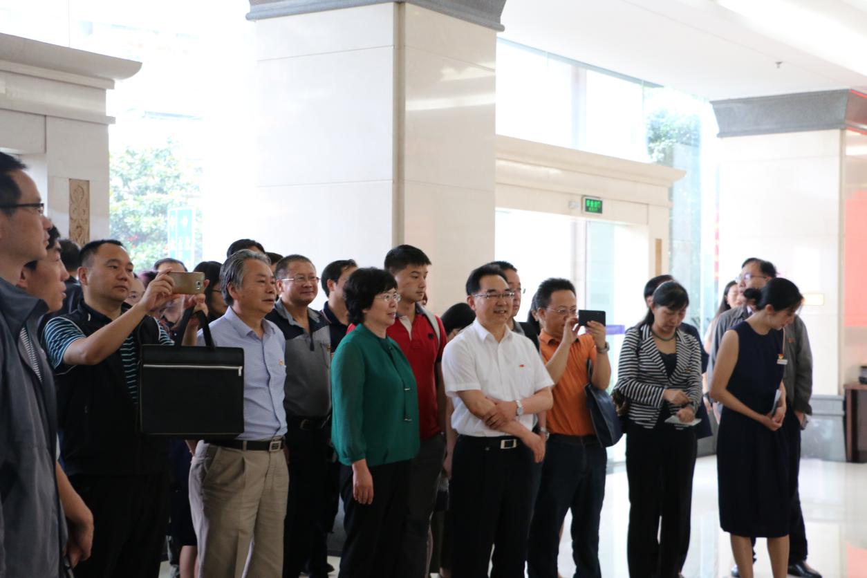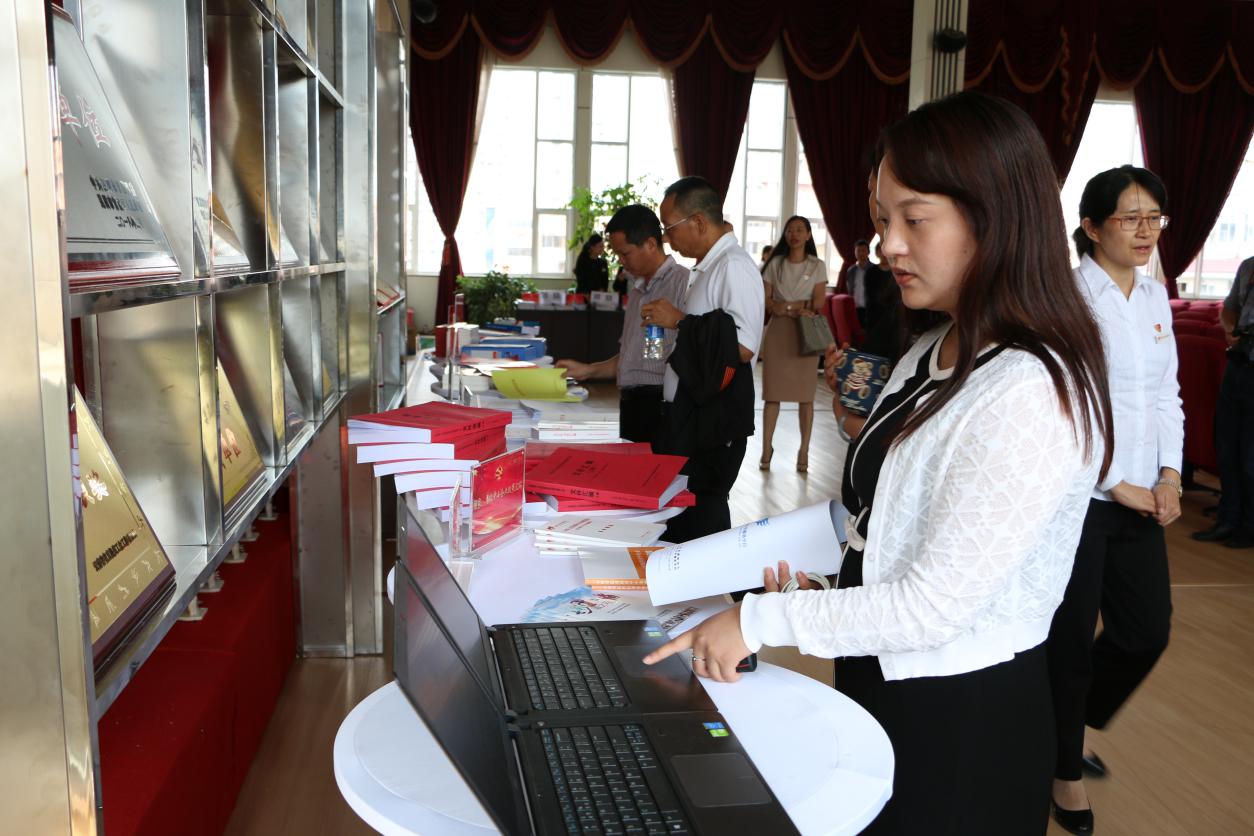 观摩活动从主楼一楼大厅内的四块展板开始,点面结合依次介绍了省工信委直属单位党委党建工作情况,以及云南省中小企业服务中心示范点党支部规范化建设情况,直属单位党委副书记赵天音同志对展板中的建设图文进行了详细解说。随后,在省工信委六楼会议室,各位参会代表参观了会场展台陈列的省工信委直属单位党委党建工作台账以及云南省中小企业服务中心示范点党支部台账资料、获奖实物等,受到了与会代表的一致好评。省直机关工委杨光波副书记对这次交流会给出高度的评价。