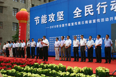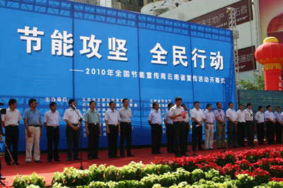 按照国家发展改革委等十四个部门联合下发《关于2010年全国节能宣传周活动安排意见的通知》(发改环资〔2010〕989号)要求,6月12日,全国节能宣传周云南节能宣传活动开幕式暨节能系列展览展示活动在昆明市南屏街步行广场隆重举行。中共云南省委常委、省政府罗正富常务副省长,省政府和段琪副省长,省政府黄立新副秘书长、省政府叶燎原副秘书长;省级有关部门领导,11家集团公司、25家千家节能行动企业、4个重点州市主管部门有关代表出席了开幕式。省政府常务副省长罗正富同志宣布:“2010年全国节能宣传周云南省节能宣传活动启动”。开幕式上,昆明钢铁控股有限责任公司代表全省58个责任单位向全省宣读《云南省“十一五”节能攻坚决战宣言》,昆明、曲靖、玉溪、红河四个重点州市人民政府、建筑、交通、商业、农村和公共机构等5个重点行业部门,以及昆明钢铁控股有限公司、云天化集团有限责任公司、云南铜业(集团)有限公司、云南省锡业集团控股有限责任公司、云南铝业股份有限公司、云南驰宏锌锗股份有限公司等6户重点耗能企业在《云南省“十一五”节能攻坚决战宣言》墙签字,共同表达我省各行各业在节能攻坚之年,确保完成“十一五”节能减排目标任务的决心。云南省工业和信息化委等12家单位设立节能咨询台和宣传点,通过向广大市民发放宣传资料,组织节能知识有奖问答、赠送节能灯、环保袋、节能扑克,绘制节能漫画墙,制作“十一五”节能系列宣传展板等多种形式、增强了宣传效果。围绕“节能攻坚 全民行动”全国节能宣传周活动的主题,云南省节能宣传活动期间,还将组织节能系列展览展示活动,财政补贴高效照明产品推广活动,“中国节能服务万里行”云南首发站活动,与省总工会组织百万职工节能减排百题知识竞赛活动,与团省委组织开展万名节能志愿者传播节能知识活动,组织实施十万只节能灯情系怒江活动,与中国电信、中国移动等通信网络滚动播发节能宣传公益短信等活动,使我省节能宣传周活动内容更加丰富、多彩。