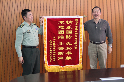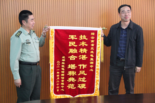 近日,成都军区“电测II”行动在我省圆满结束。这次行动受到了云南省人民政府的高度重视和云南省工业和信息化委员会的积极配合。整个行动历时10天,行程数千公里,先后深入我省普洱市、西双版纳州有关地区进行实地测试作业。云南省工信委(无线电管理办公室)、无线电监测中心以及普洱市、西双版纳州工信委、无线电监测站和相关县政府组织相应的人力、物力和设备积极配合成都军区“电测II”行动的实施。在全体工作人员的共同努力下,整个行动达到了预期效果,取得了圆满成功。成都军区电磁频谱管理委员会办公室向我委及普洱市、西双版纳州工信委和省无线电监测中心发了感谢函。对云南省工信委系统不辞劳苦,克服困难,以精湛的业务技能,良好的工作作风,认真的工作态度积极配合部队圆满完成了这次行动表示衷心的感谢和诚挚的敬意。成都军区电磁频谱管理中心分别向云南省工业和信息化委员会以及普洱市、西双版纳州工信委和云南省无线电监测中心颁发了旌旗。