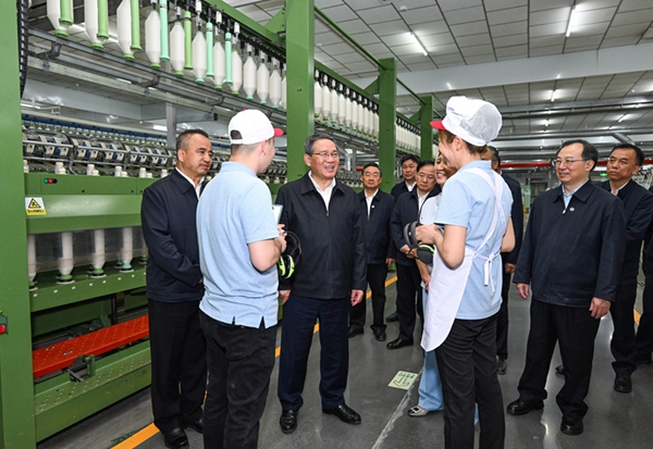 5月7日至9日,中共中央政治局常委、国务院总理李强在新疆调研。这是5月8日,李强在昌吉溢达纺织调研,详细了解企业生产研发、市场开拓等情况。新华社记者 饶爱民 摄