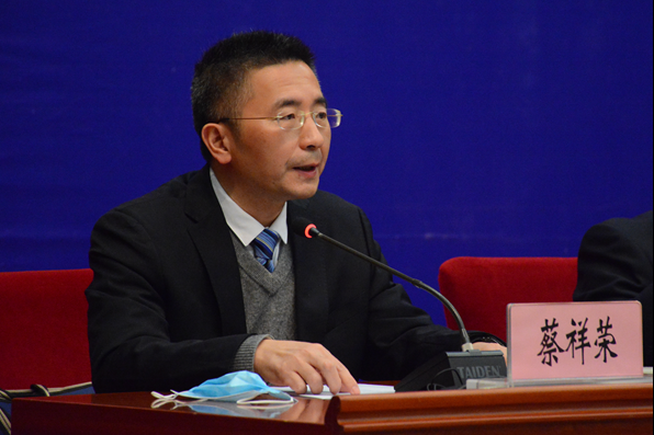 云南省委省政府应对新型冠状病毒感染肺炎疫情工作领导小组指挥部宣传组组长,中共云南省委宣传部副部长、云南省人民政府新闻办公室主任蔡祥荣主持新闻发布会