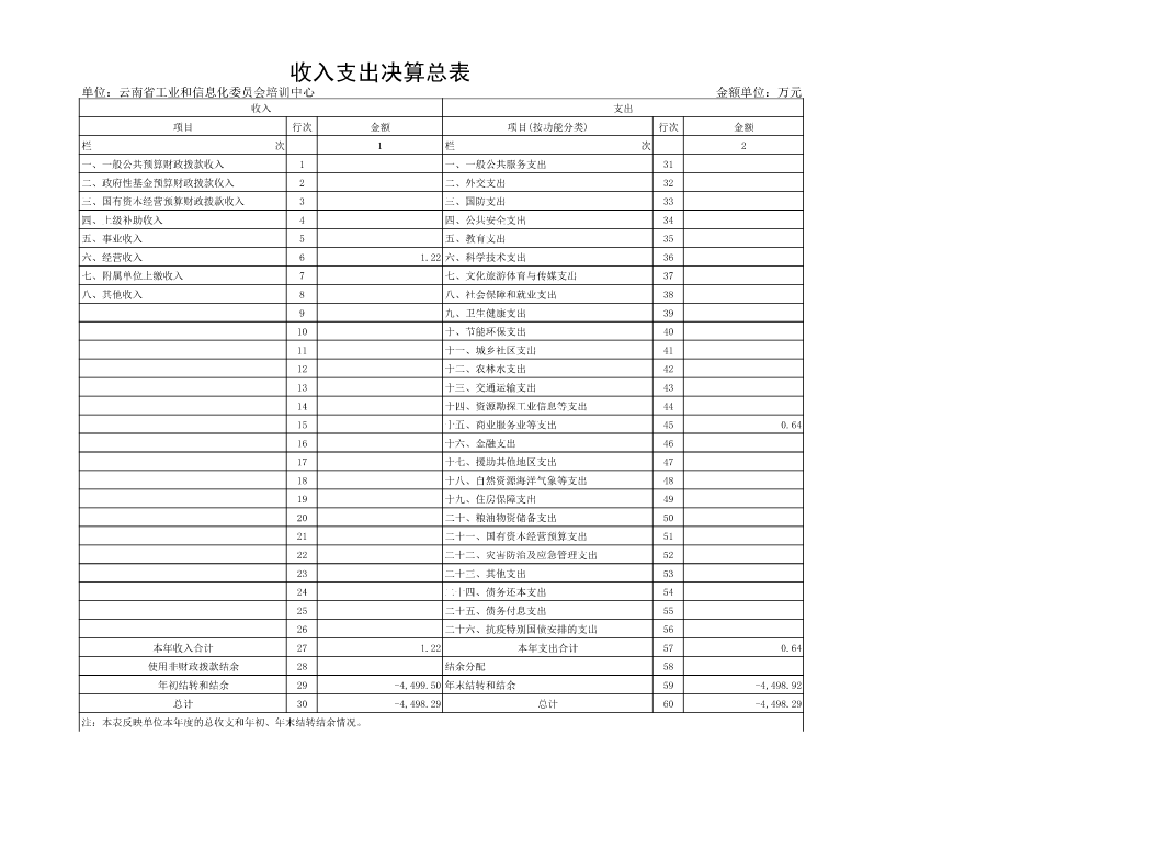 2.云南省工业和信息化委员会培训中心2020年没有财政拨款收入,也没有使用财政拨款安排的支出,故《财政拨款收入支出决算总表》无数据;