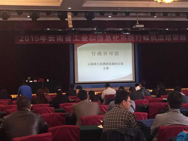 2015年10月27日至11月4日,我委在昆明举办了两期工业和信息化系统综合行政执法培训班,来自各州、市(县)各级工信部门和州、市盐务管理局共316名行政执法人员参加了培训。谢晓阳副巡视员到会并做了开班动员讲话,省法制办和省工信委有关专家对《行政处罚法实务》、《行政许可法》、《行政强制法》、《工业和信息化执法实务》、《行政救济》及相关专业法律法规等法进行了深入浅出的讲解和诠释,对执法人员在执法过程中普遍存在的问题及案例进行了剖析,使参训学员对综合法律知识有了一个较为全面的了解和认识。培训结束后,参训学员均通过省政府法制办考试领取和换发了行政执法证件。