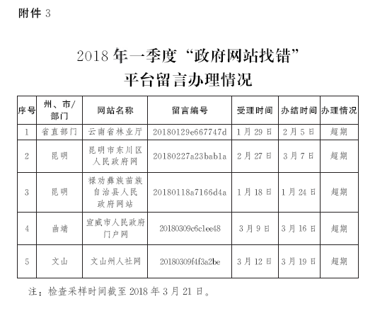 3.2018年一季度“政府网站找错”平台留言办理情况