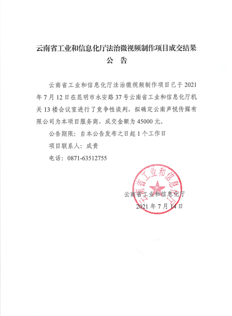 索引号: 3070211020000013000000/2021071400000176 发布机构: 生效日期: 2021-07-14 废止日期: 文 号: 主题分类: 政府采购 88影视 法治微视频制作项目成交结果公告 发布时间:2021-07-14 浏览次数: 次 【字体:小 大】 【打印正文】 【字体:小 大】