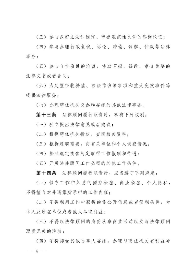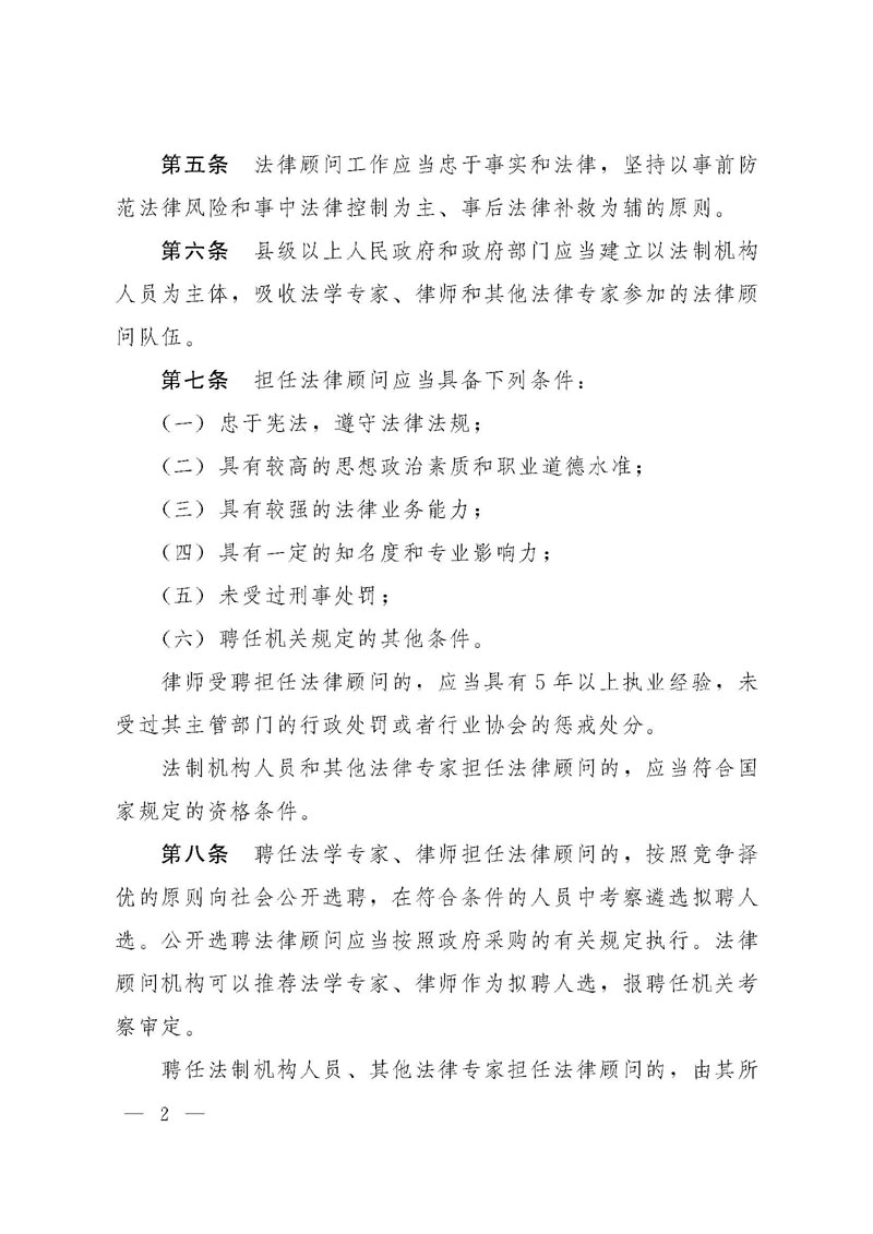 索引号: ynsgxw-1-13923 发布机构: 云南省工信厅 生效日期: 2018-01-04 废止日期: 文 号: 主题分类: 政策文件 云南省政府法律顾问工作规定(省政府令第210号) 发布时间:2018-01-04 浏览次数: 次 【字体:小 大】 【打印正文】 【字体:小 大】