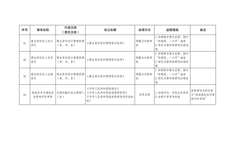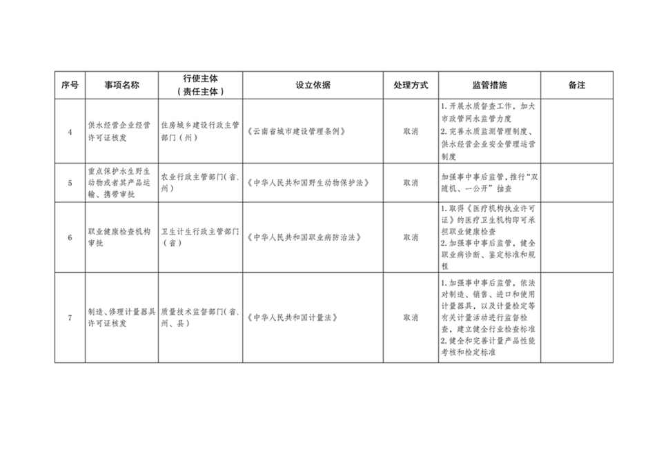 附件:云南省人民政府决定调整的行政许可事项目录(共34项)