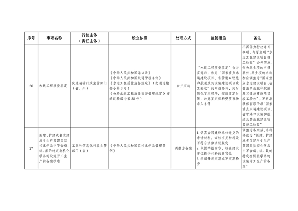 对取消的行政许可事项,审批部门一律不得再实施或变相审批;对下放的行政许可事项,下放部门要与承接部门做好交接工作,确保下放事项落实到位;对调整为备案的事项,实施部门不得再以行政许可方式实施,要加强业务信息系统建设,推进“互联网+政务服务”工作,简化备案手续,方便群众、企业网上备案;对合并实施的事项,各地各部门要简化受理和审查环节,减少申办材料,压缩审批时限,优化审批服务,提高审批效率,按照要求统一规范办事指南和业务手册。