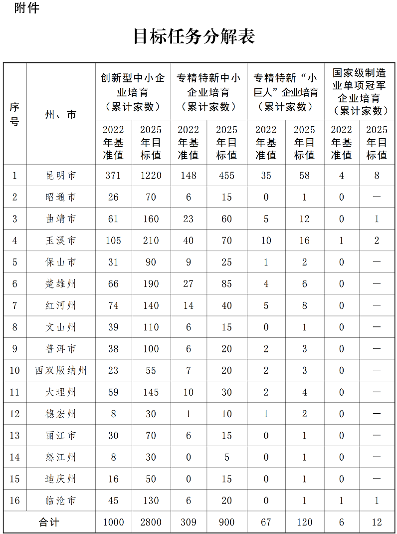 云南省人民政府办公厅关于印发云南省专精特新企业培育三年行动计划(2023—2025年)的通知