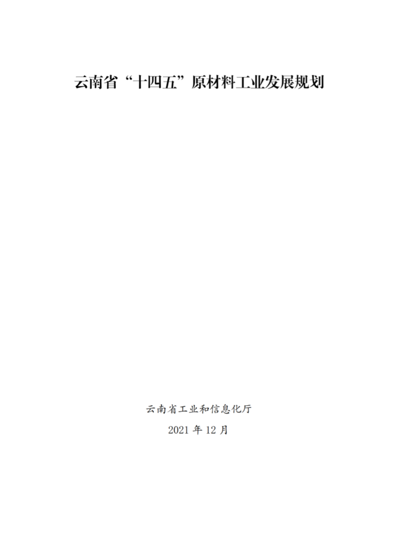 关于印发云南省“十四五”原材料工业发展规划的通知